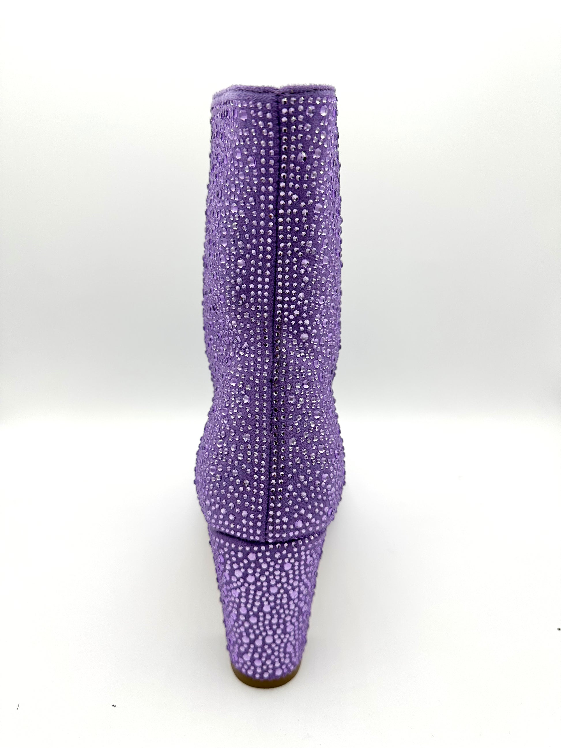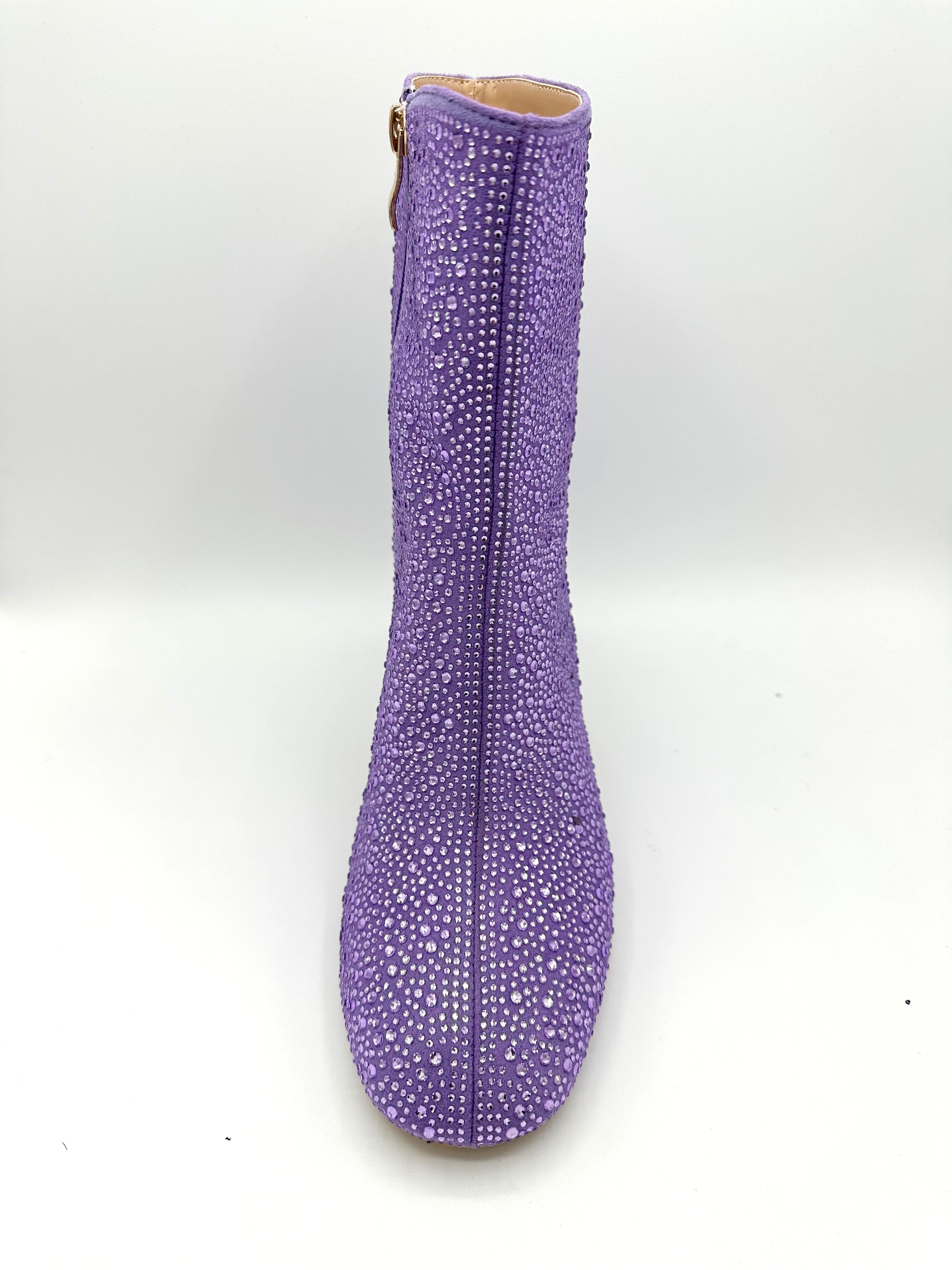 Made of lilac suede material with silver individual stones placed all over, extra cushion for comfort to endure hours of standing, Littles 2 1/2 inch heels Adults 3 inch heel - children's sizes run small, we recommend to size up.